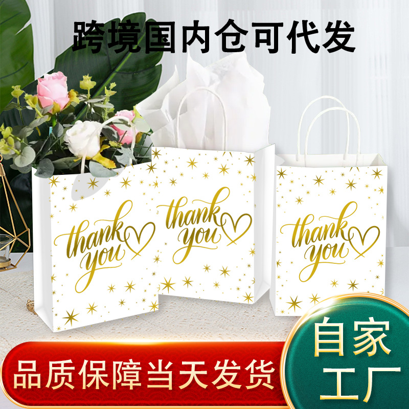 サンキューギフトバッグ、ホットスタンピング付き高級ポータブルクラフト紙バッグ、誕生日、感謝祭、クリスマスギフト包装袋