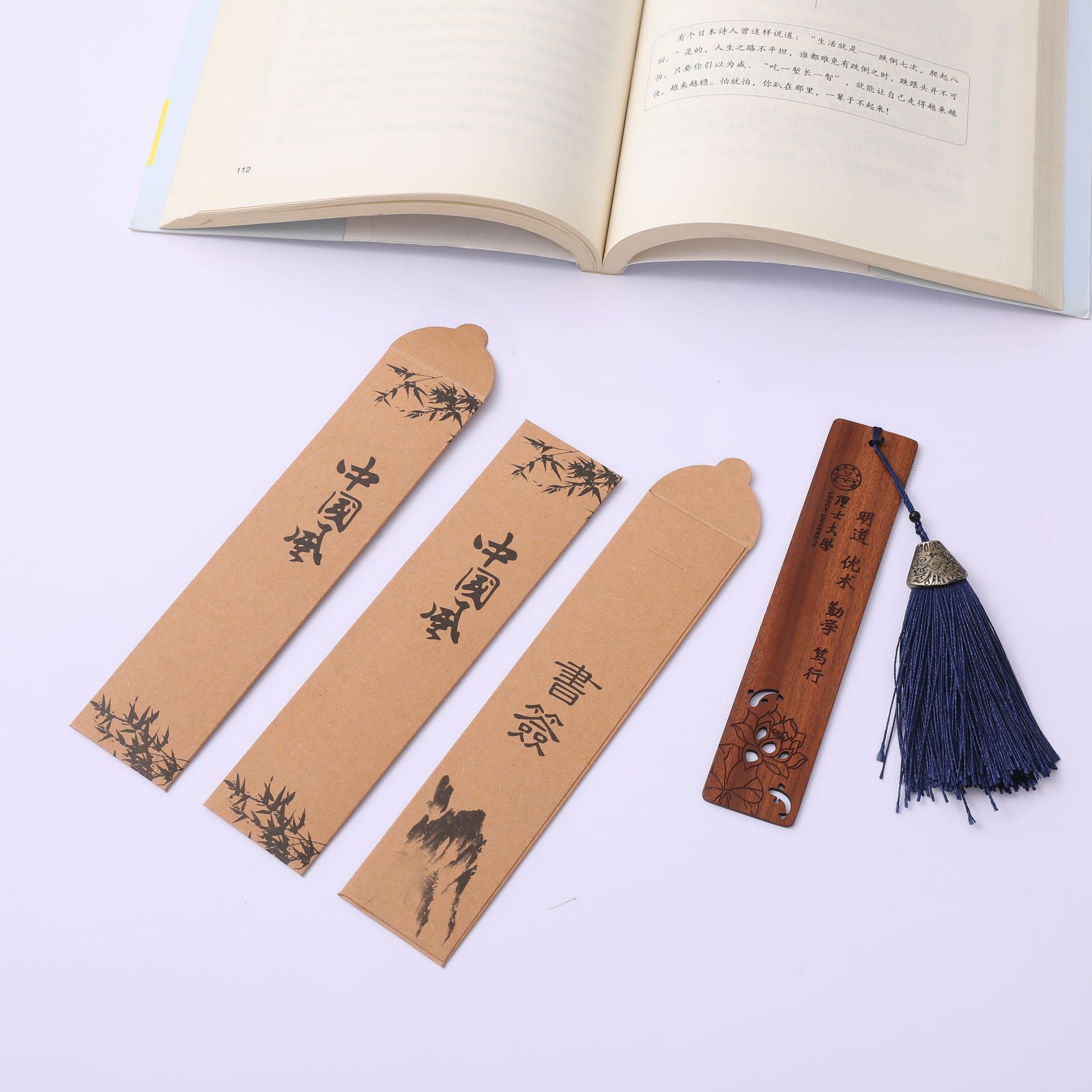 メーカーのクラフト紙のしおり袋のスプーンの箸袋のしおりの包装袋の精巧な小さい贈り物の袋はlogoを印刷することができます。