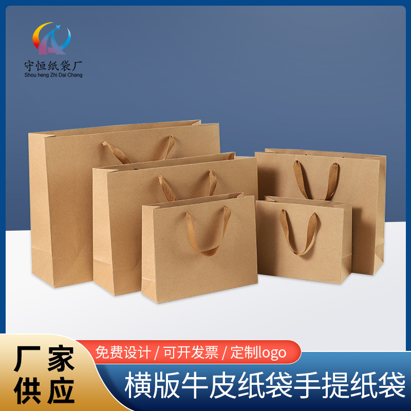 横版クラフト紙袋卸売り服装袋クラフト紙現物手提げ袋ギフト袋