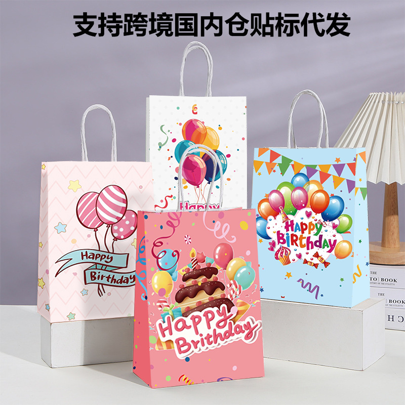 クロスボーダー誕生日パーティーギフトバッグ漫画バルーンケーキクラフト紙ハンドバッグステッカー付き手持ち包装紙袋