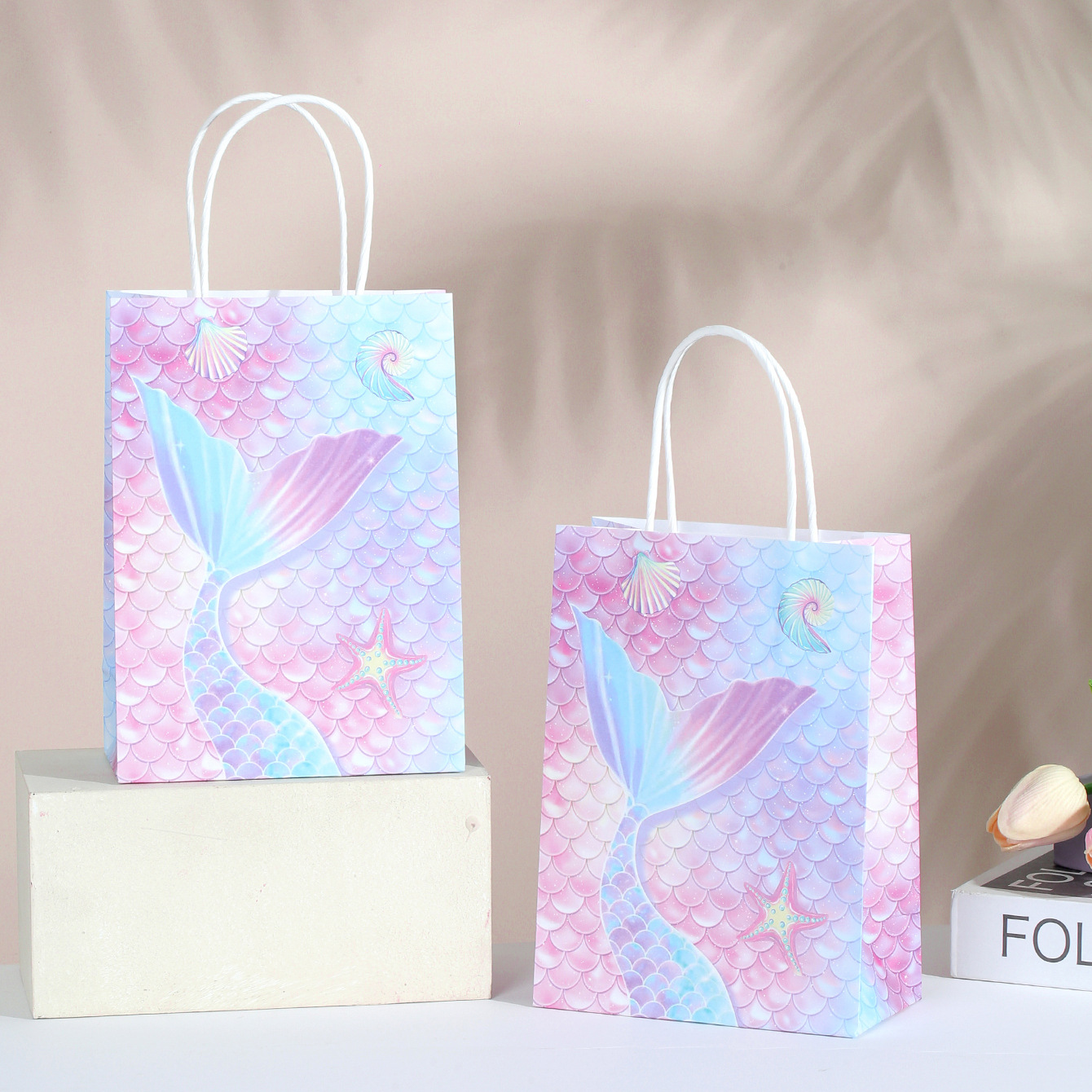 クロスボーダースポットグラデーションマーメイドテールパーティーギフト包装袋カラー印刷漫画クラフト紙ハンドバッグ