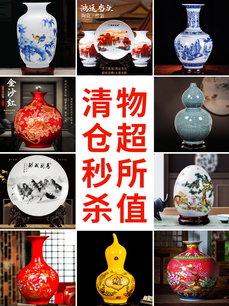新中国式景徳鎮陶磁器花瓶客間生け花テレビ戸棚乾花磁器装飾品家庭装飾品置物