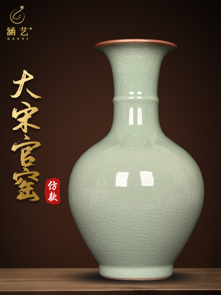 景徳鎮陶磁器の青磁の花瓶は昔の中国式の客間のテレビの戸棚の生け花の装飾品の家の磁器の瓶の置物をまねます。