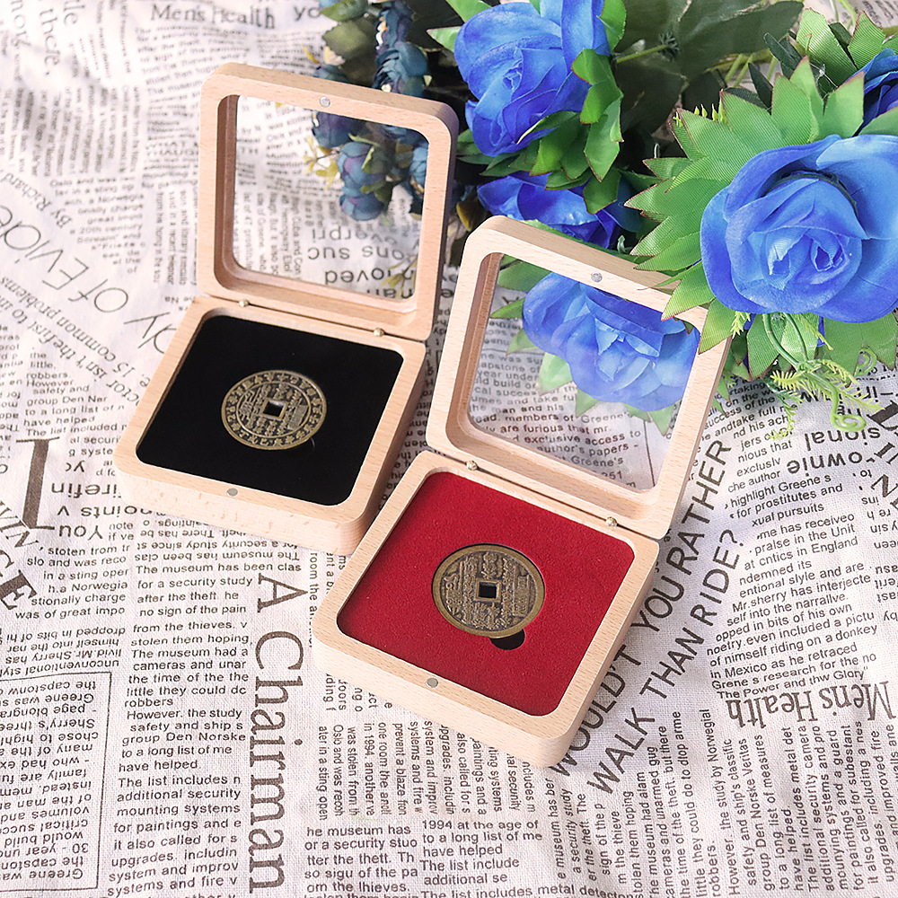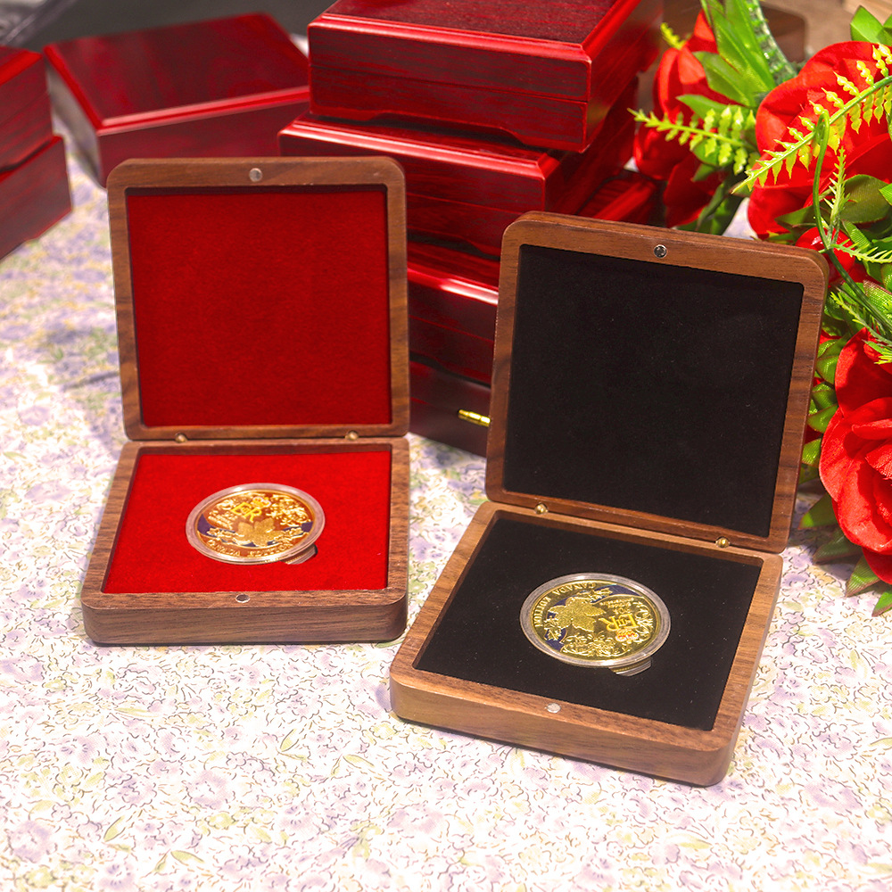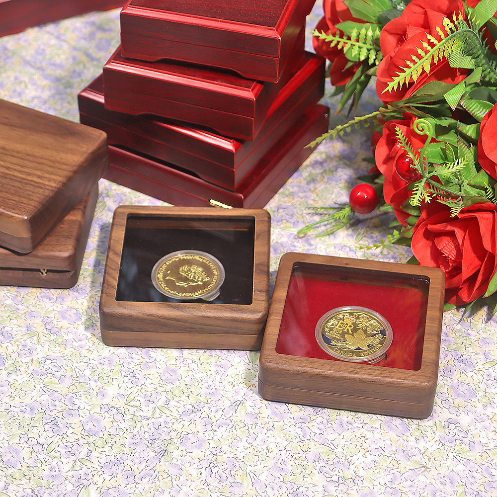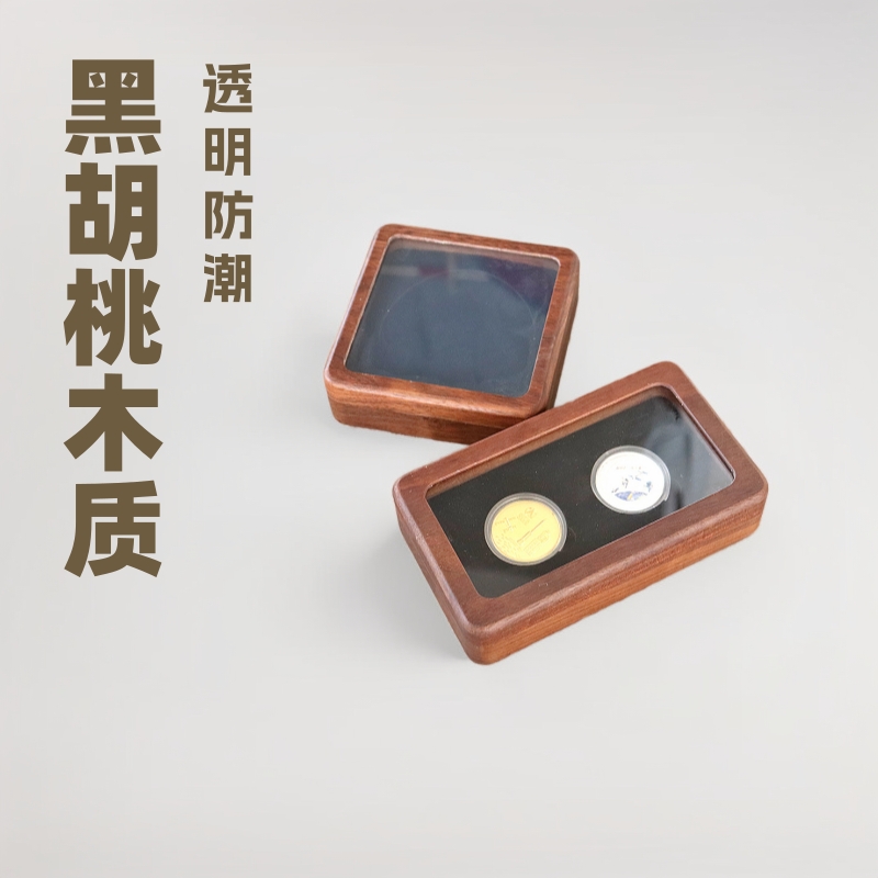 9cm アクリル胡桃木記念コイン木箱古銭銀元金貨包装収納ボックスレトロスタイル