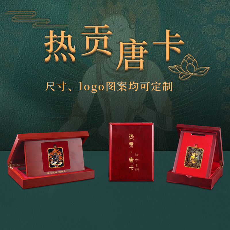 チベットの伝文化の黒い金の唐カードの包装は小さい唐カードの文殊の木の箱のガウの6字の真言の仏の牌の唐の絵を持ちます。