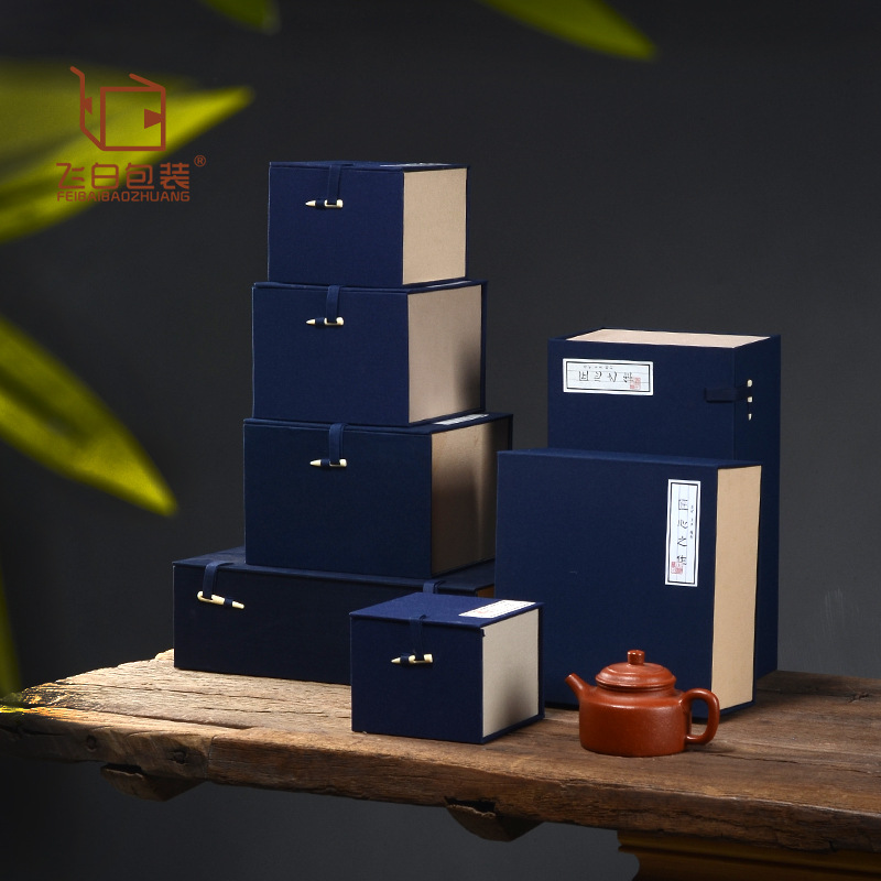 革紐付き青布箱紫砂壺茶器包装箱工芸品ギフト収納箱陶器正方形ギフトボックス文芸風