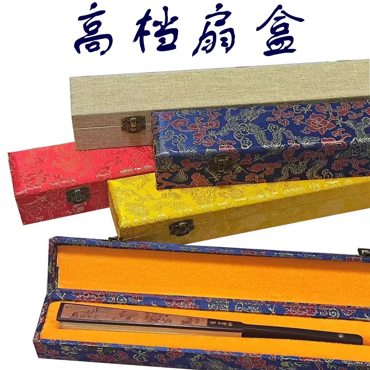 ライスペーパーファンボックスハイエンドファンボックス錦箱 10 インチ 9.5inch 8inch 中国ファンギフトボックス錦箱スロット付きギフトボックス
