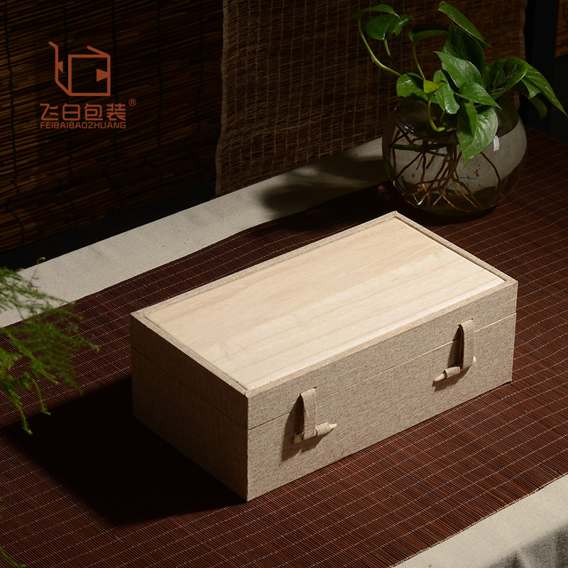 桐の木のトップの細い麻布の香の箱はふたをひっくり返して長方形のシンプルなホノルルの玉器の陶磁器の工芸品の収納包装のギフトボックスを覆います。