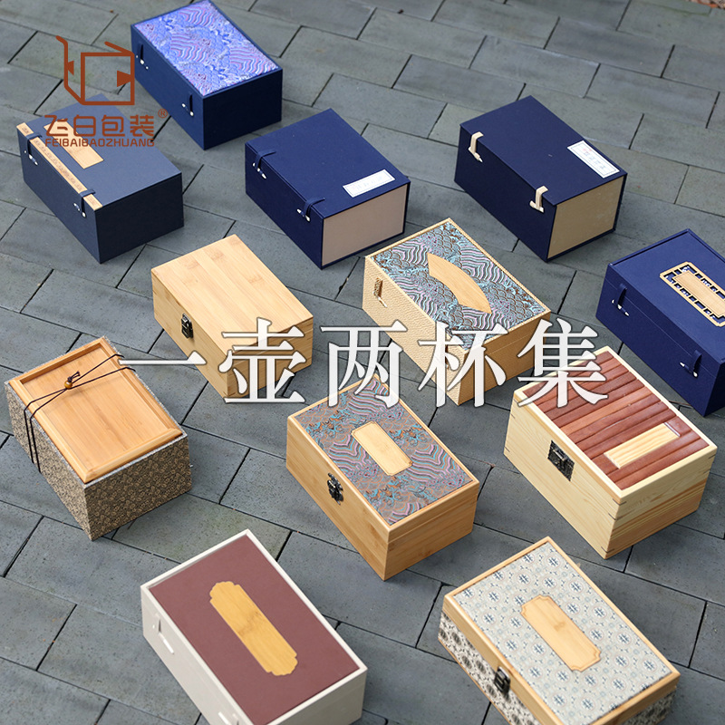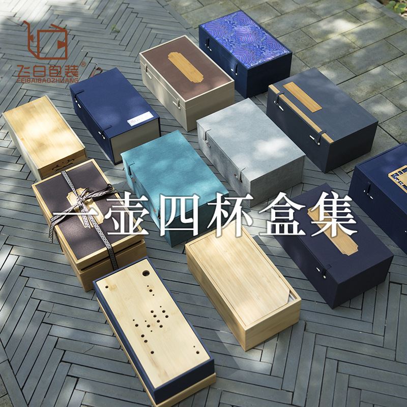 ベルベット木骨針布芸箱シンプル長方形単杯単壺収納箱品杯紫砂壺包装ギフトボックス