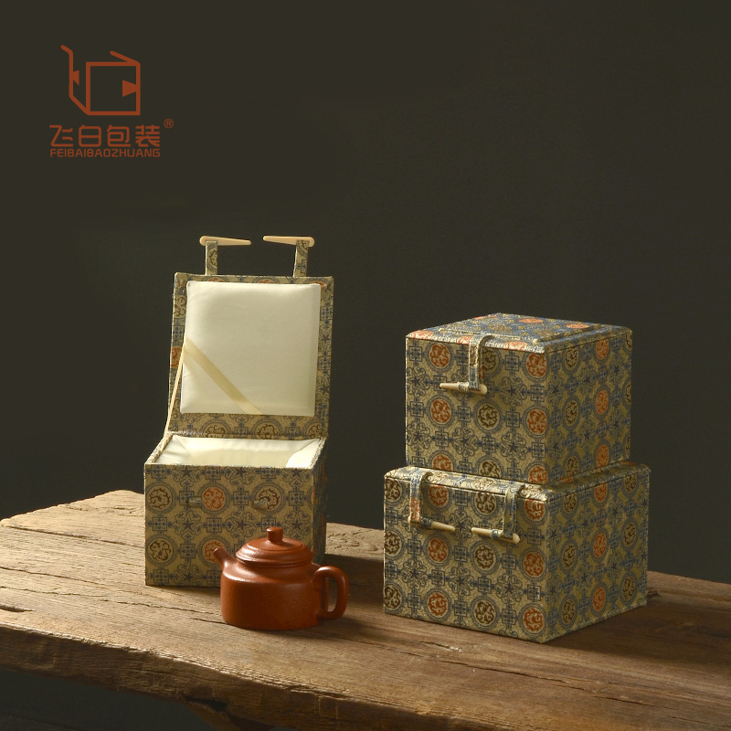 花錦布芸箱中国式主人杯建杯包装箱紫砂壺収納ギフトボックス収納リネン錦箱