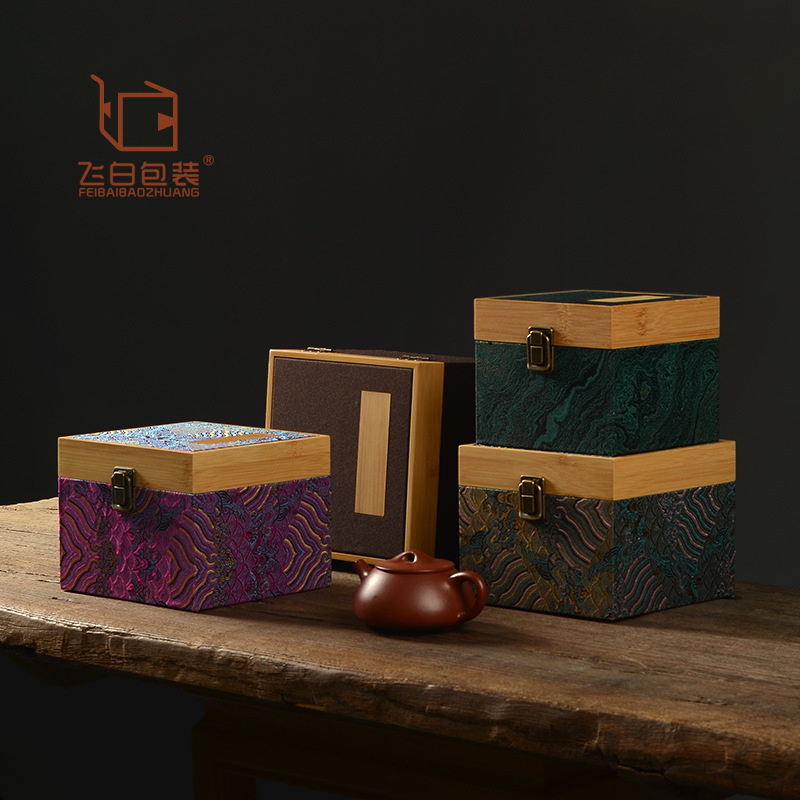 新商品の竹の蓋の錦布の箱のファッション的な竹の板は布の工芸の紫砂の壺を貼ります。