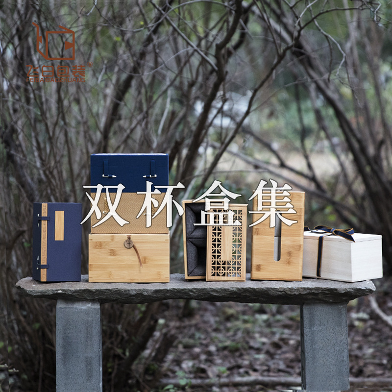 高級竹錦箱双杯ギフトボックス茶杯品茗杯空箱建杯茶具長方形包装収納ギフトボックス