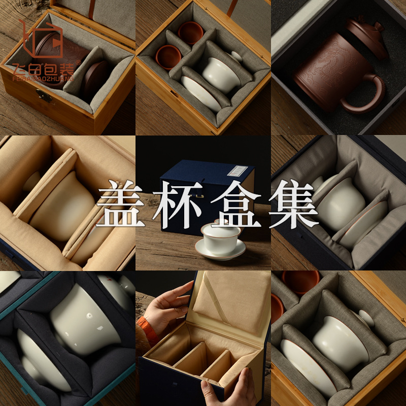蓋杯蓋碗包装空箱陶磁器錦箱茶器建杯礼箱紫砂蓋杯麻布箱収納ギフトボックス
