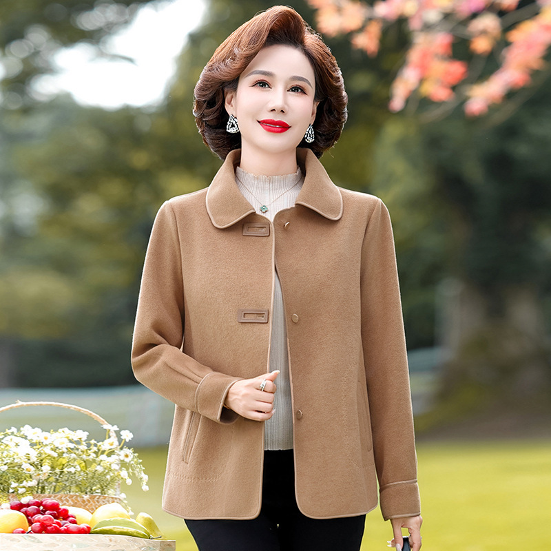 2025年向けママ服、両面ウールコート、ショート丈カーディガン、ゆったり中高年女性服、ショート丈ゆったり着痩せ効果
