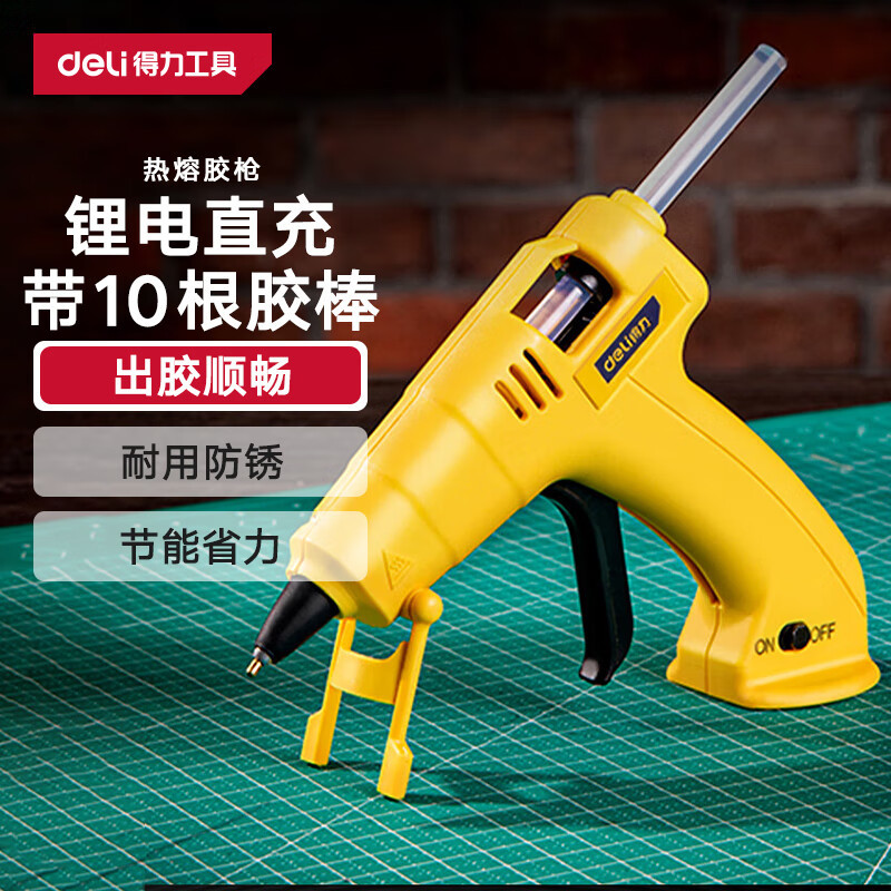 得力(deli) 家庭用無線リチウム電気ホットメルト銃セット子供手作りDIY3.6V 10本ゴム棒