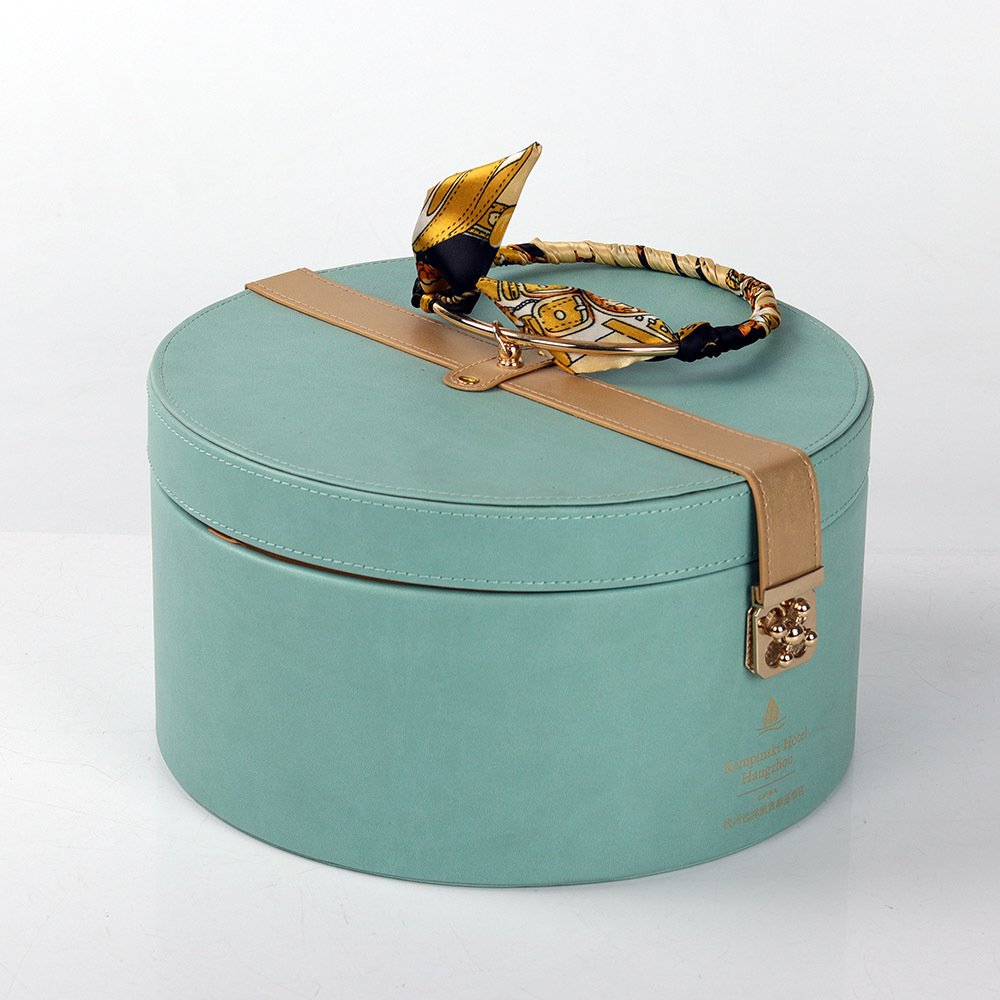 レザーハグバケツ結婚式のお土産チョコレート化粧品香水月餅赤ワインポータブルラウンドギフトボックス