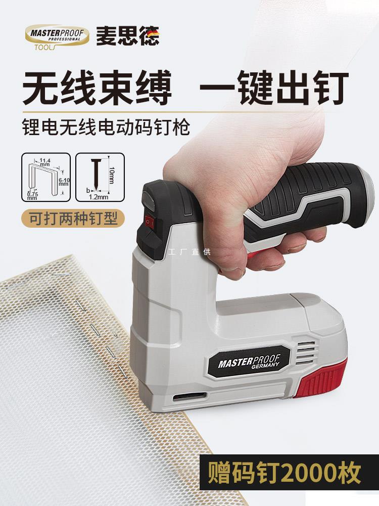 ドイツのマースの電動のステープルの銃の充電式のステープルの銃の家庭用の木工のドアのステープルの銃のリチウムの電気の雅通思