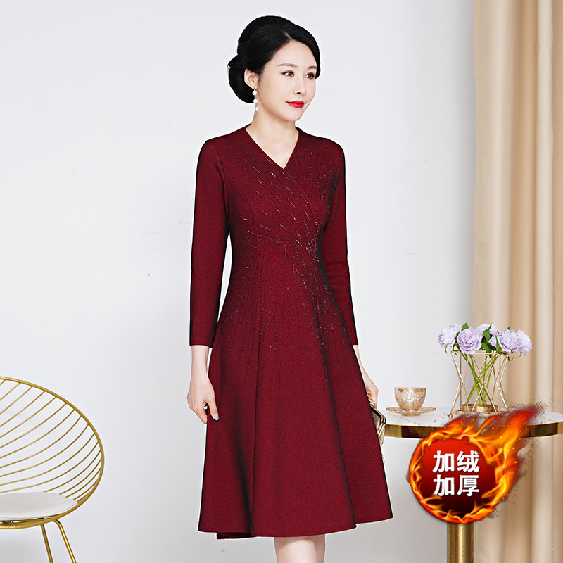 メーカー直販のカシミヤの母の披露宴のドレス喜姑の大きいサイズのワンピースはチャイナドレスの中年2024春を改良します。