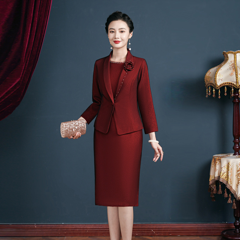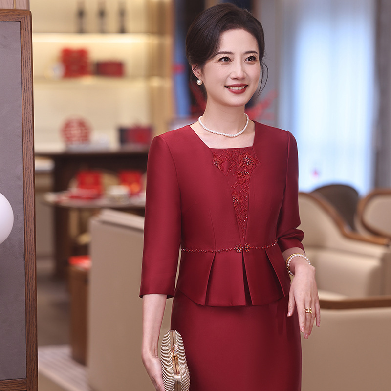 2025年秋新作ママ服、お母様や義母様の結婚式や披露宴用のファッショナブルなツーピースセット、ドロップシッピング対応