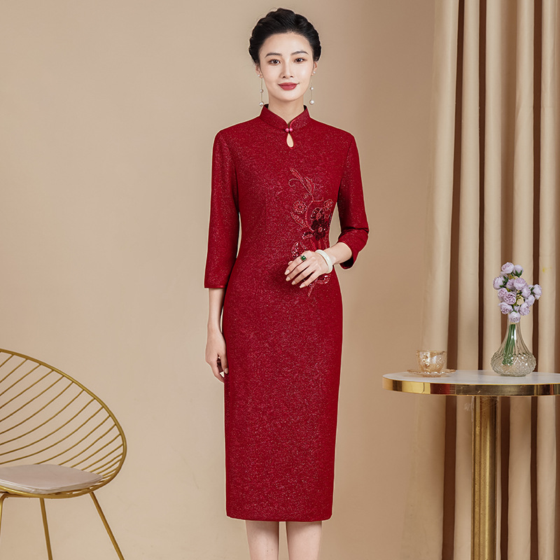 2025年の新しい高級秋服、義母の結婚披露宴チャイナドレス、高級若い母親のドレス