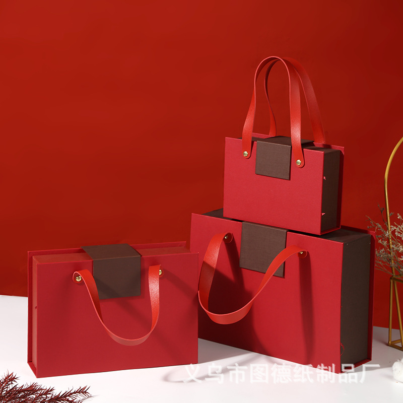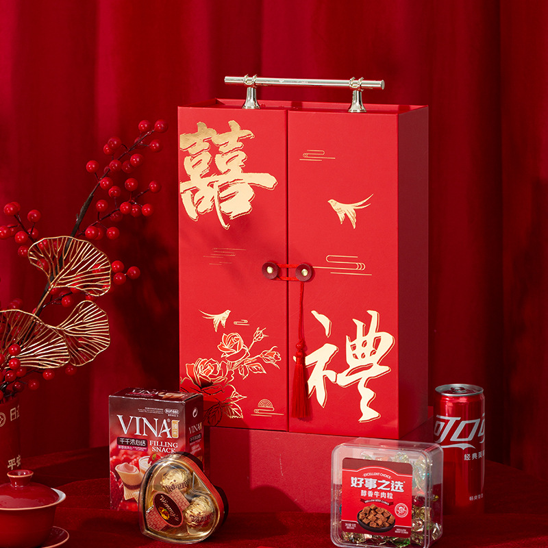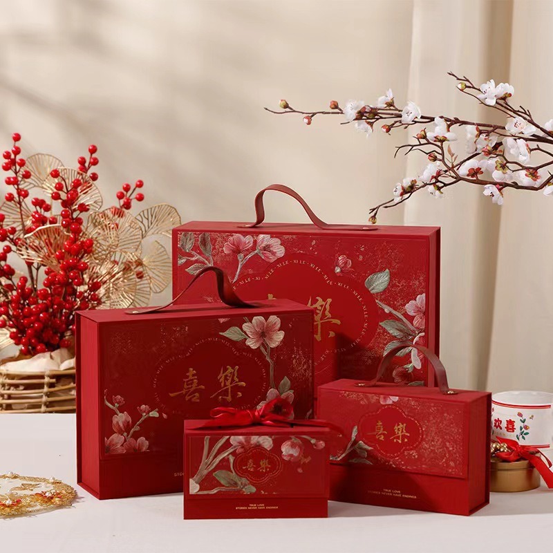 中国風ダブルドアお土産ギフトボックス空箱大赤色婚約高級感国潮喜糖箱手提げギフトボックス