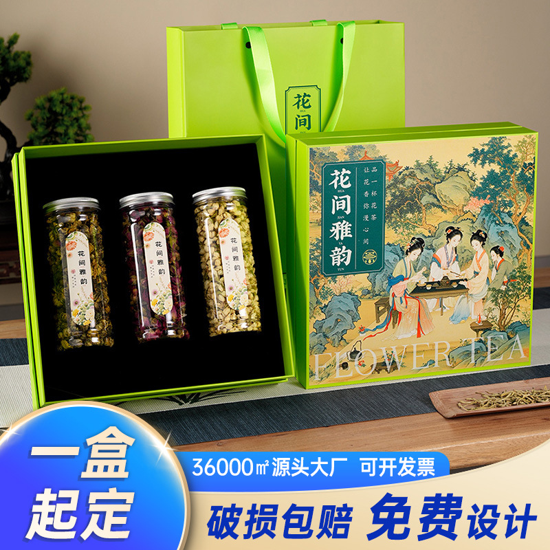 花茶包装箱空礼箱薔薇功菊紅棗西洋参石けん角米養生茶ギフトボックス通用送人