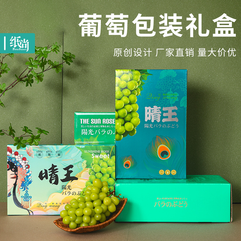 日光薔薇包装箱ブドウ礼箱10斤入空箱高級晴王香印青提三合一ギフトボックス