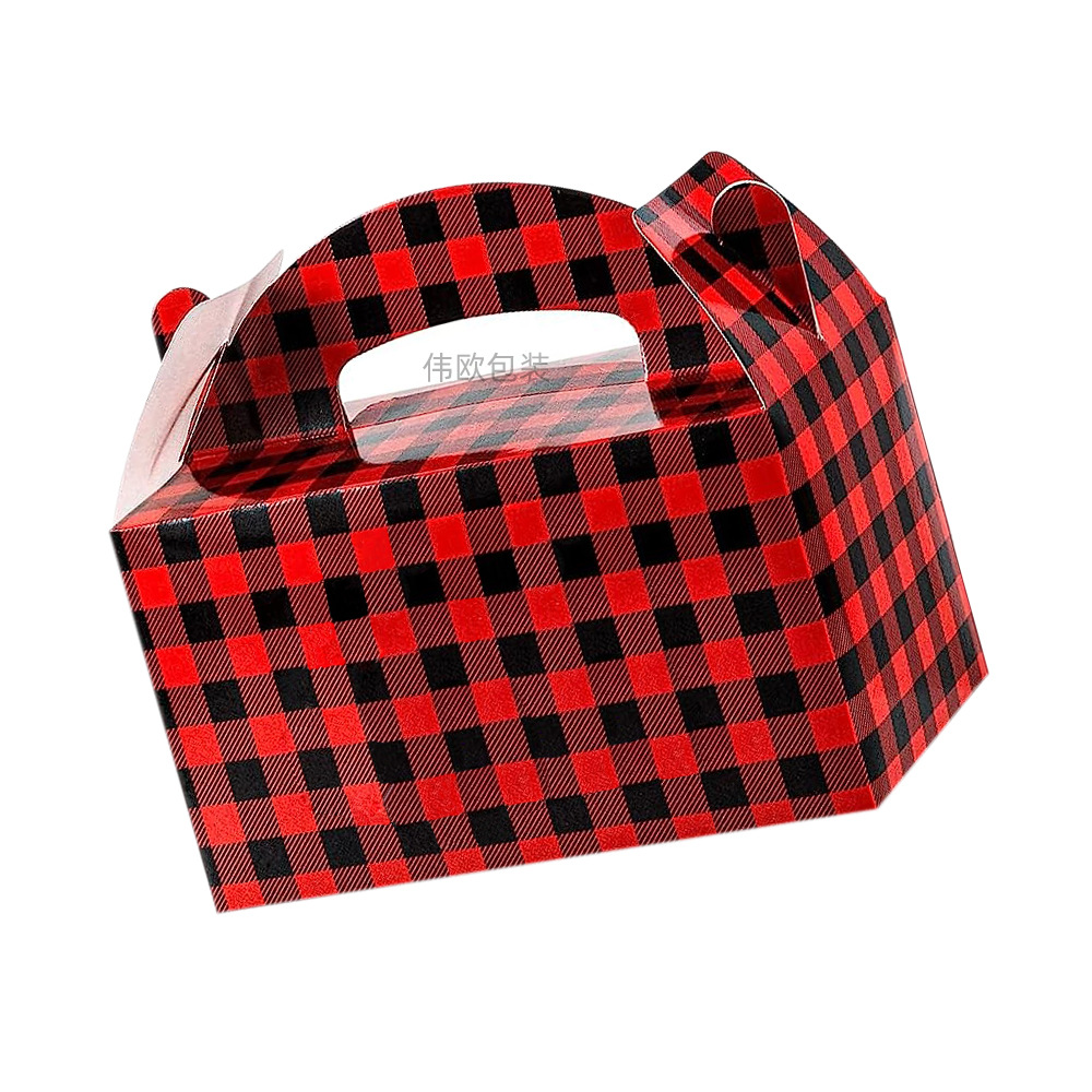 クリスマスキャンディー包装箱赤白黒格子菱格礼箱箔押し白紙紙手提げ紙箱