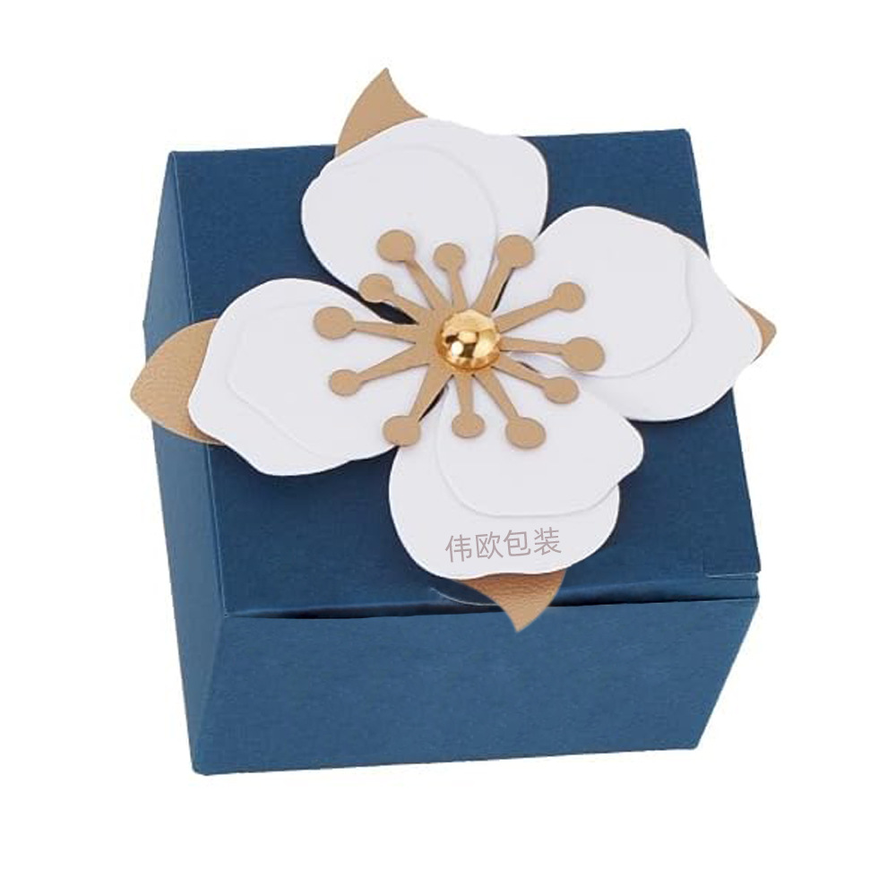 青い包装ギフトボックス正方形花びら結婚式パーティーギフトボックスキャンディープレゼント袋誕生日花嫁喜糖箱