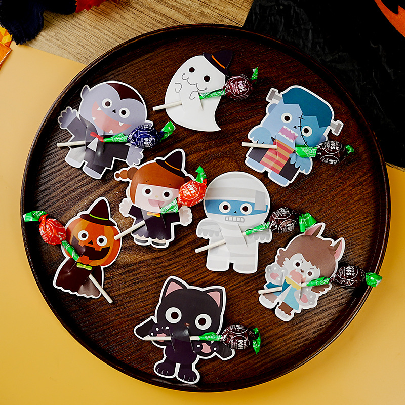 国境を越えた新しいハロウィーン子供かわいいinsアニメ棒キャンディーカード装飾紙カードメッセージカード50枚