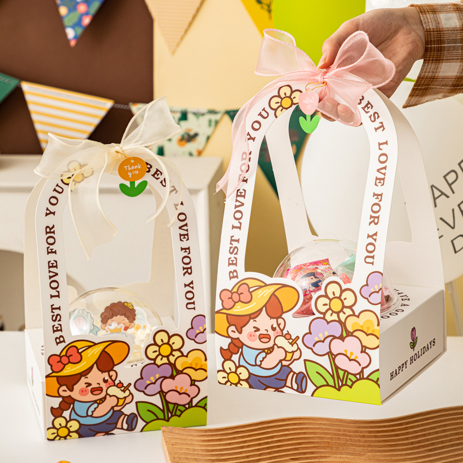 子供の漫画の贈り物の包装箱の赤ちゃんの満月のギフトボックスのキャンディーボックスの手提げの誕生日の10歳のお土産の箱