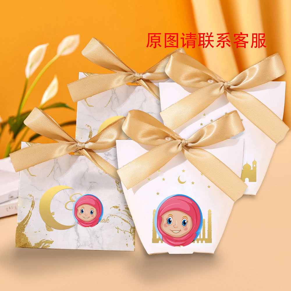箔押し月リボン手提げ箱白カードキャンディー箱祝日パーティー中東祝日金キログラム力箱現物