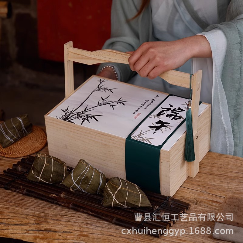 実木端午節ギフトボックス中国風お土産ちまきギフトボックス包装手提げ木製茶葉ちまき空箱