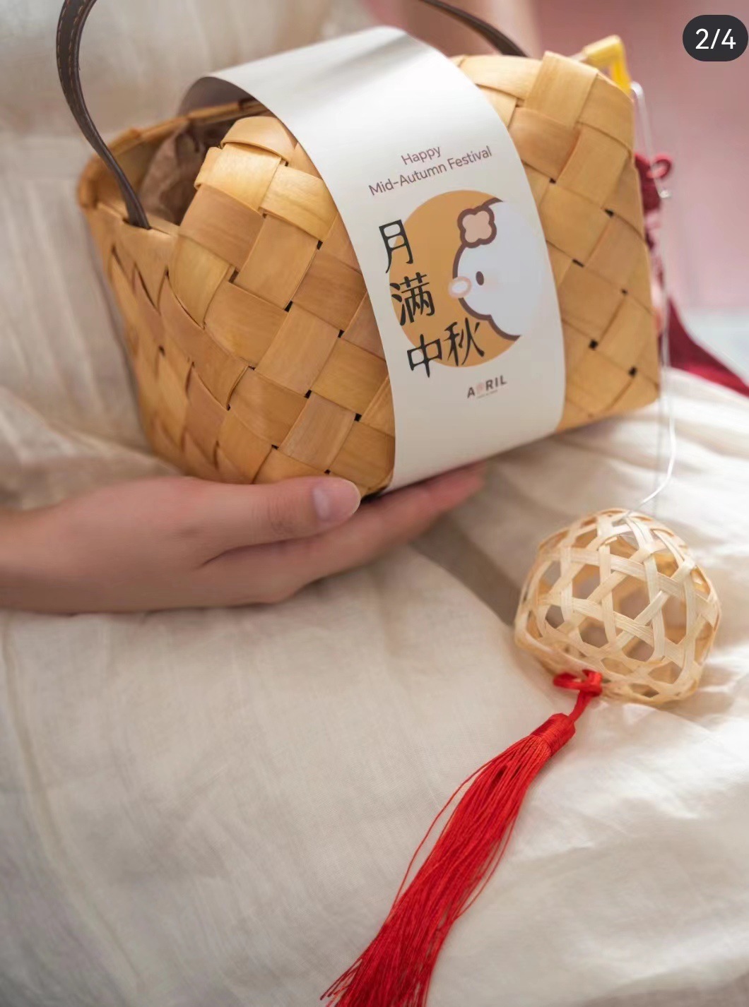 創意中秋月餅礼箱手提げ包装かご手作り木片編み食品収納手提げかご竹編メーカー