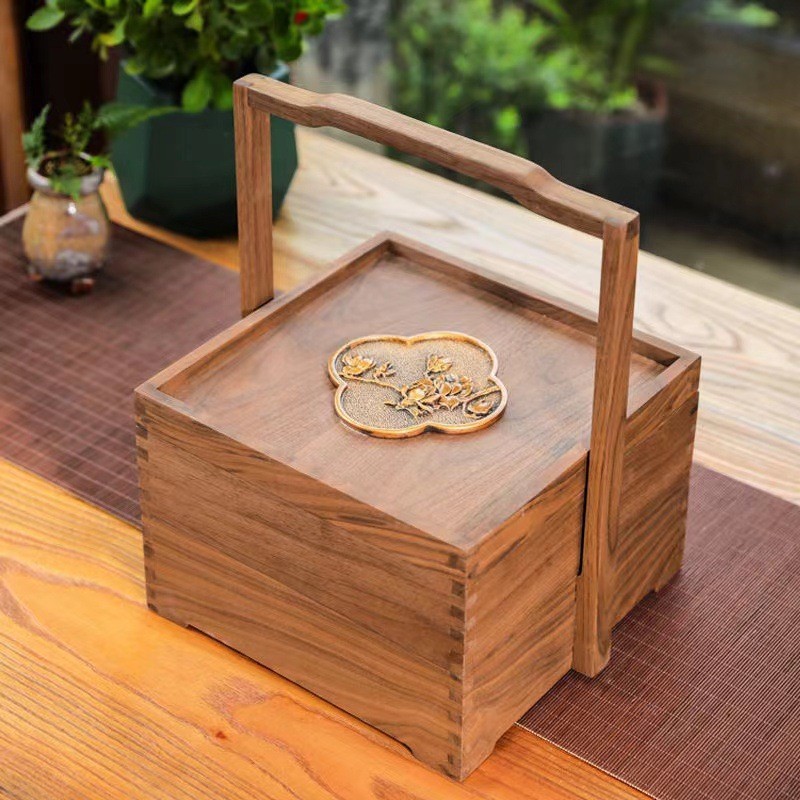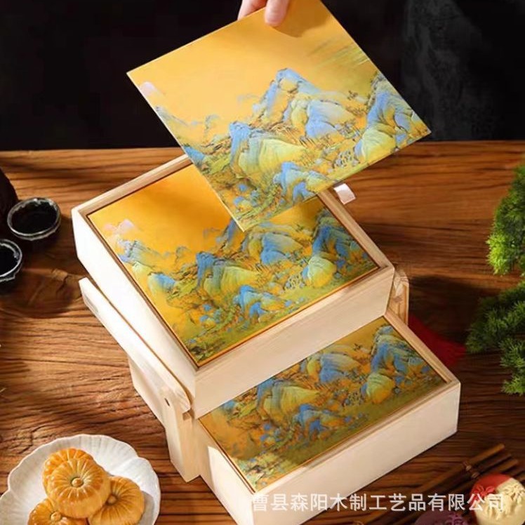 中国風二重手提げギフトボックス木製端午中秋節伴手ギフトボックス月餅箱新中国式手提げ菓子箱
