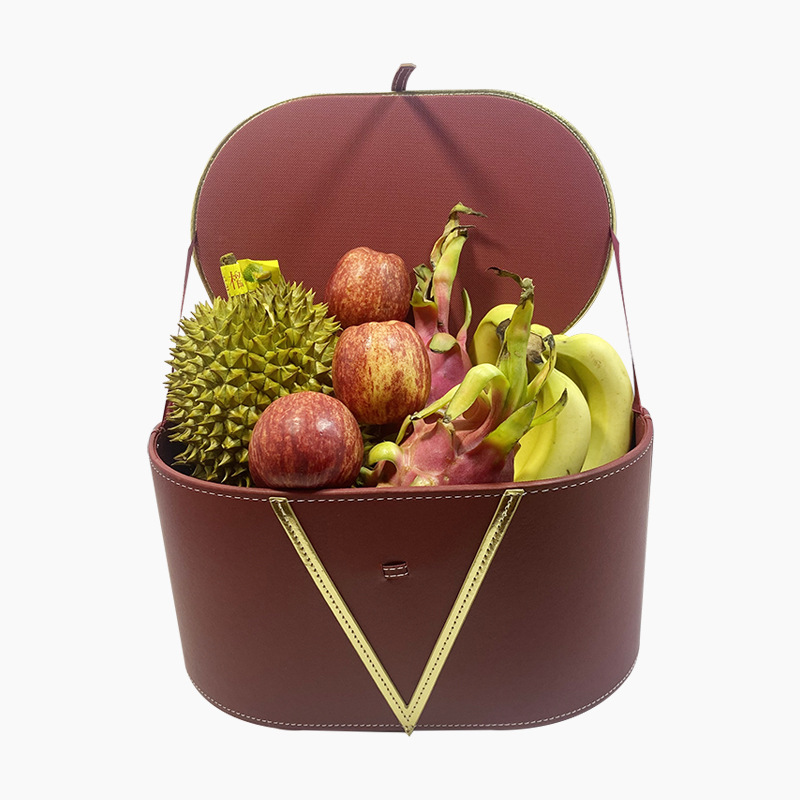 革ビジネスフルーツギフトバスケット高級ギフトボックスショッピング収納バスケット楕円形手提げバスケットクリスマス革ギフトバスケット