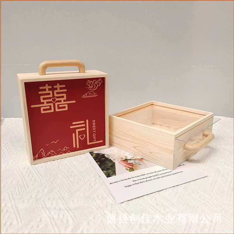松木手提げ伴手ギフトボックスアクリル結婚喜糖箱実木年品ギフトボックス花嫁プレゼントボックス