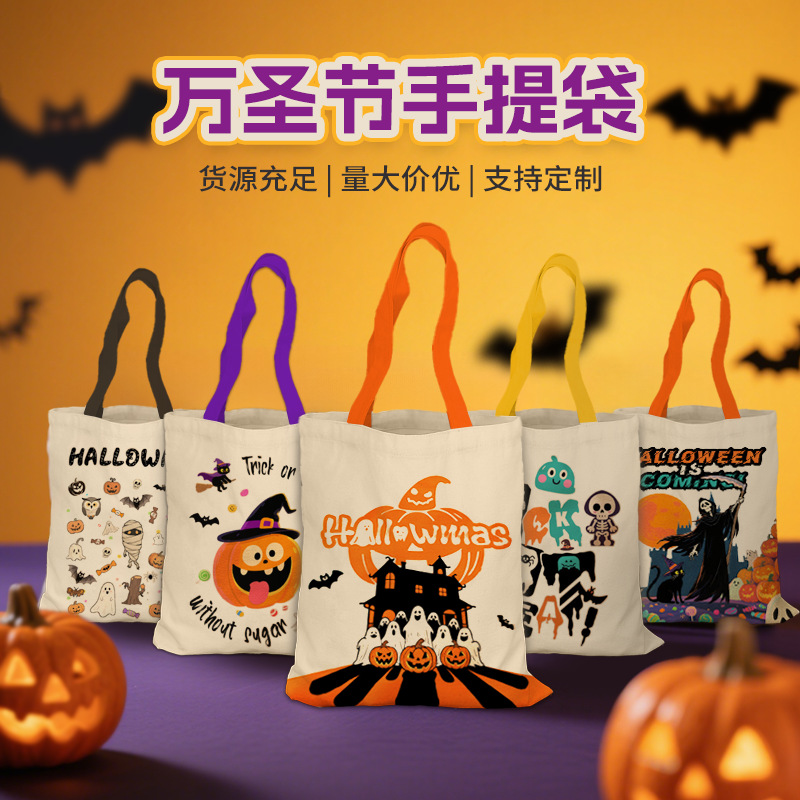 ハロウィンホラー要素ハンドショッピングキャンバスバッグカボチャゴーストフェイスキャンディ包装袋ハロウィンギフトバッグ