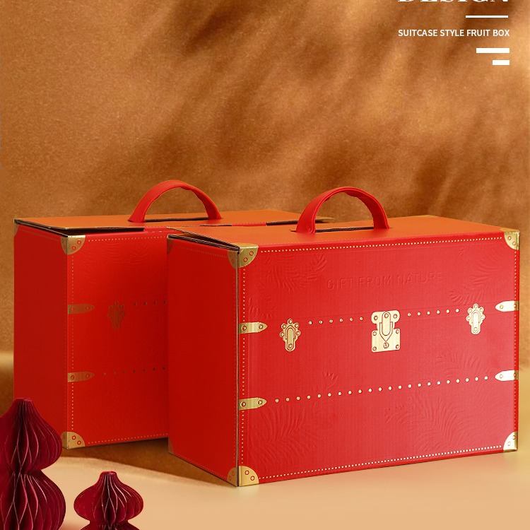 中国の赤い通用の贈り物の箱の果物の年用品の包装箱の元旦の新年の箔押しの贈り物の箱の空の箱