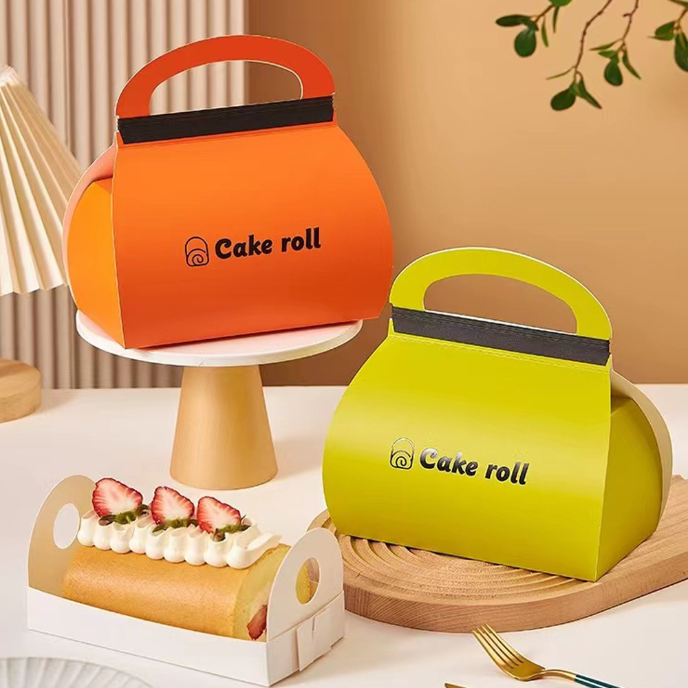2024ネット赤ケーキ巻き手提げ包装箱ムースカットケーキ緑オレンジ緑巻き西点包装箱