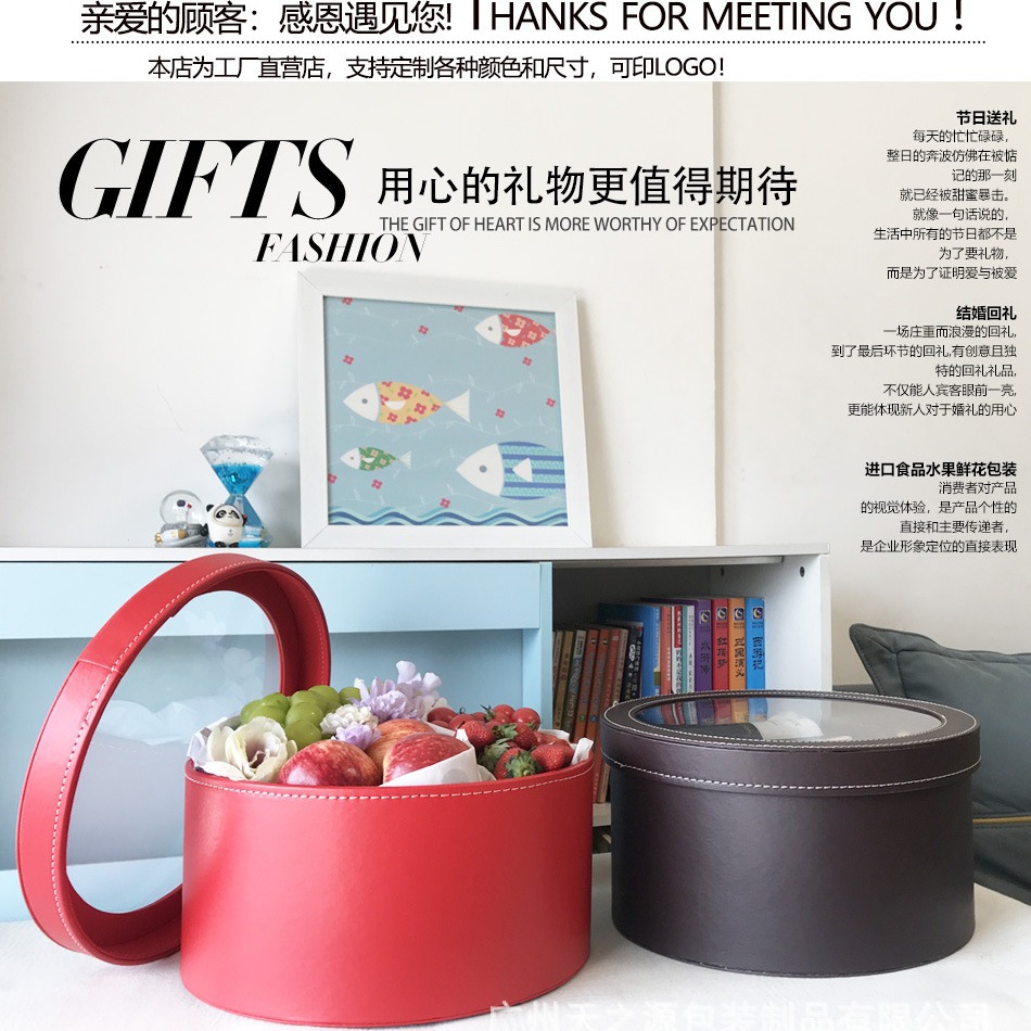 大きいサイズの果物の花の贈り物の箱の皮革の円形の贈り物の箱の空の箱の皮質の収納の箱の透視の贈り物の包装の箱