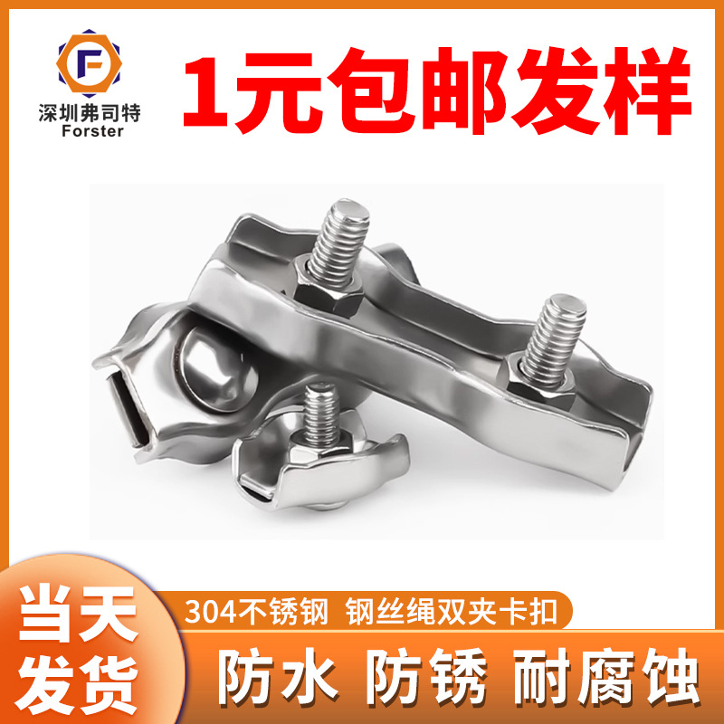 深センメーカー直販304ステンレスダブルクランプ固定ワイヤーロープロックヘッド固定クリップボタンm 8スポット
