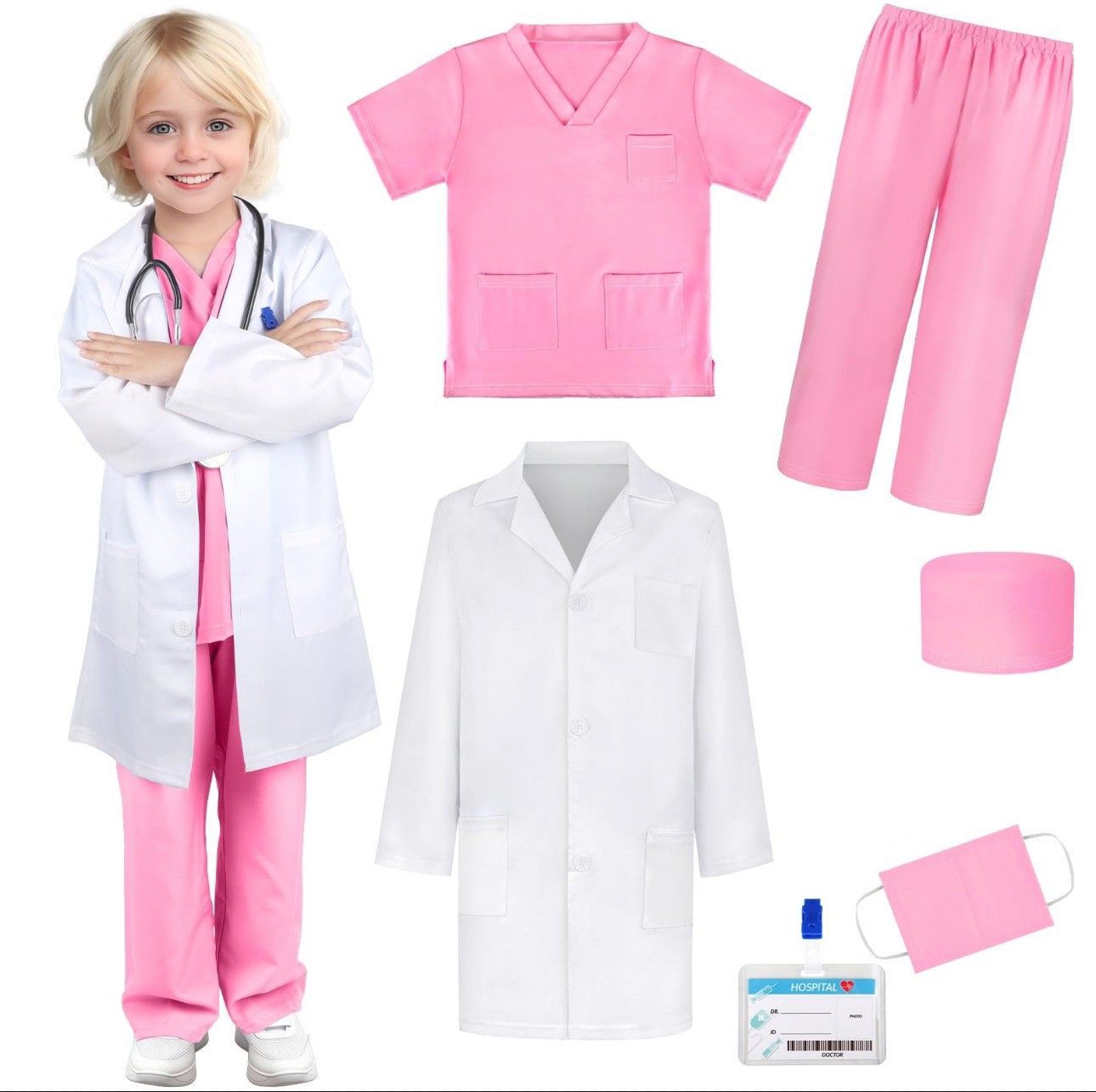 儿童跨境医生手术服幼儿园白大褂护士过家家职业角色cos扮演套装