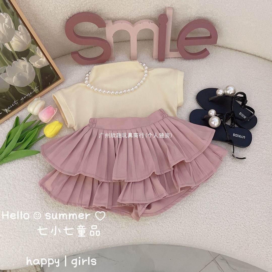 女の赤ちゃんサマースーツ 2023 新しい女の子の夏の半袖プリーツスカートツーピースセット女の子の夏のプリンセススカート