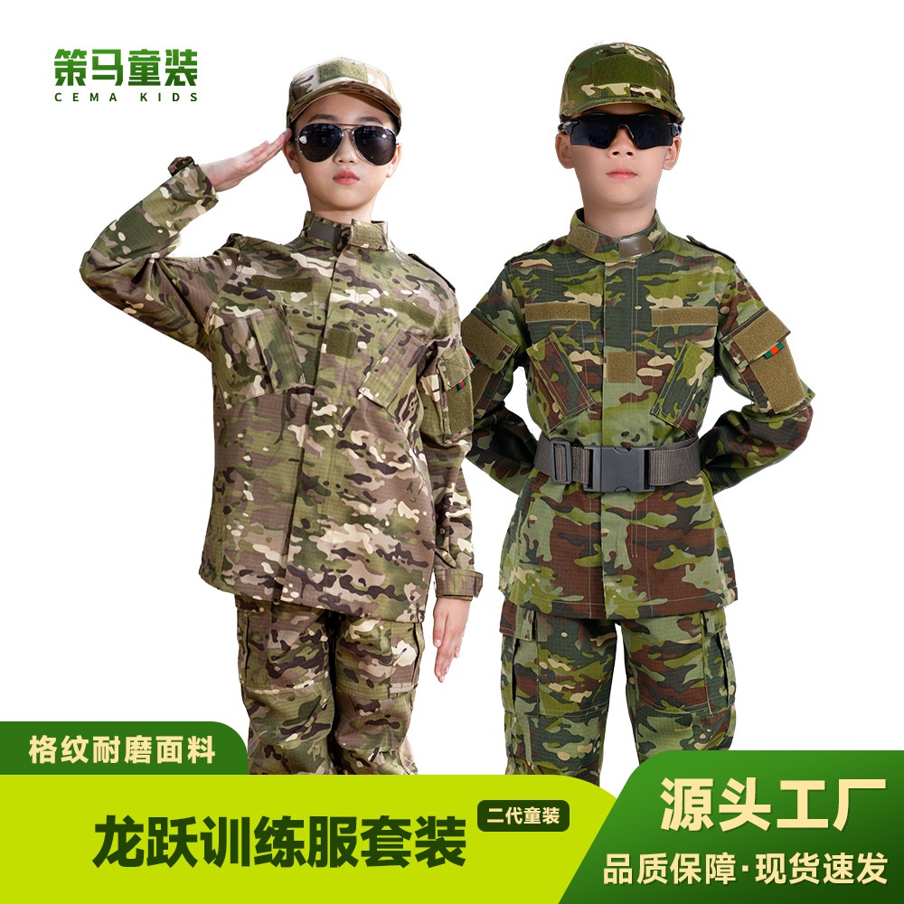 策馬児童迷彩服男夏長袖通気性屋外訓練軍事訓練服夏キャンプ訓練カエル服卸売り