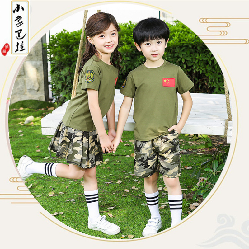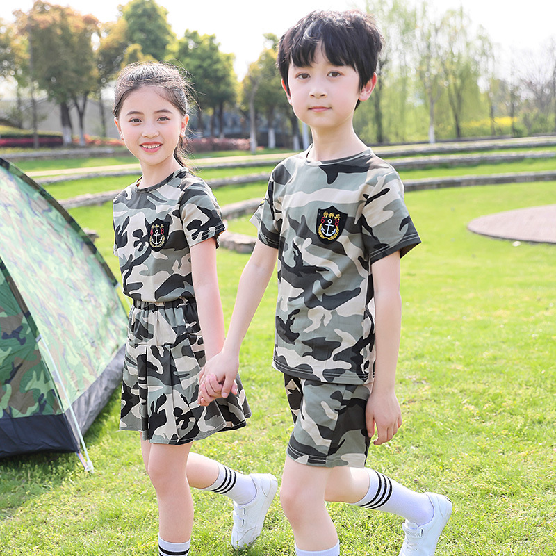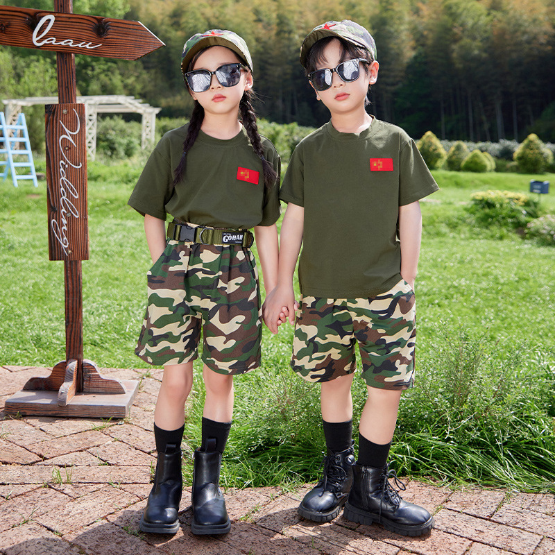 迷彩服子供スーツ男の子と女の子夏半袖小学生幼稚園サマーキャンプ屋外開発パフォーマンス服