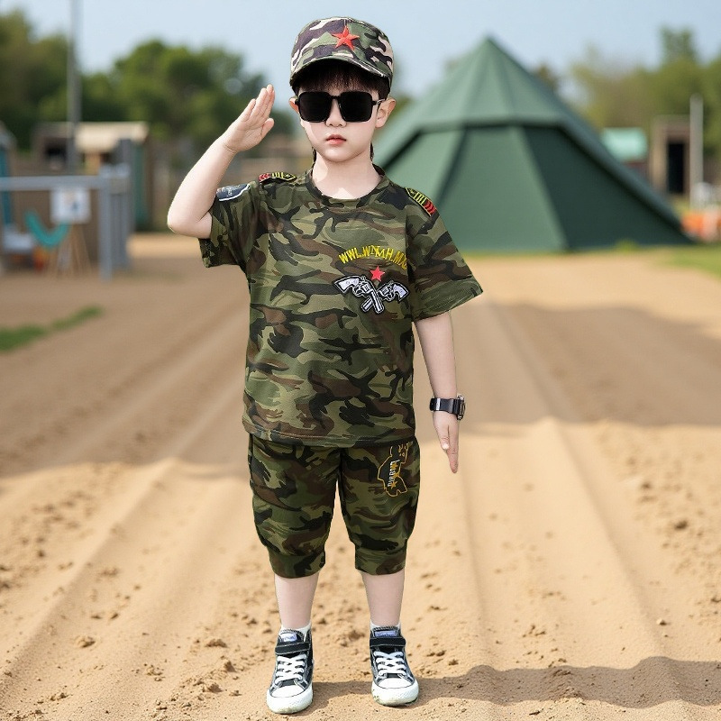 子供用迷彩服半袖セット男女童夏キャンプ特殊兵小学生軍事訓練服演出服班服潮