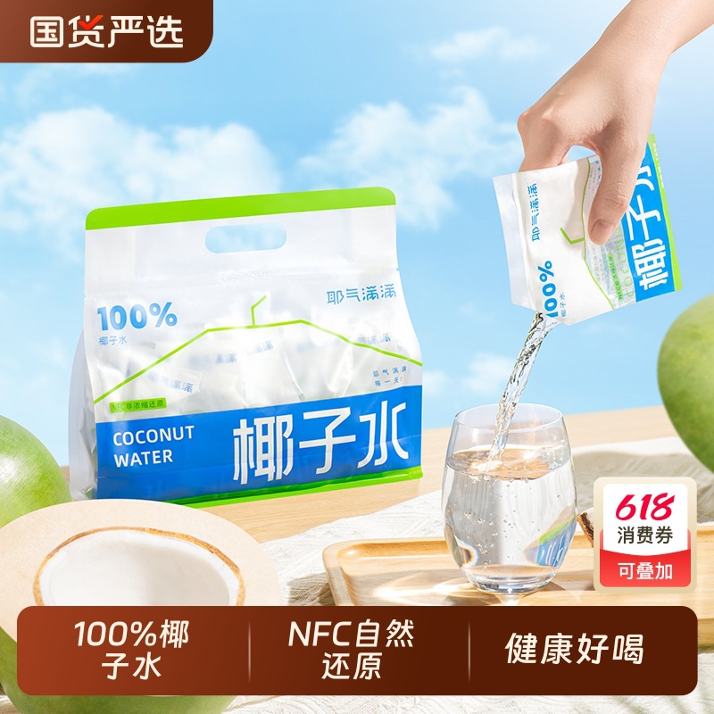 Yeqiman ココナッツウォーター 天然電解質水 NFC 非濃縮還元ココナッツウォーター 180ml*10 袋