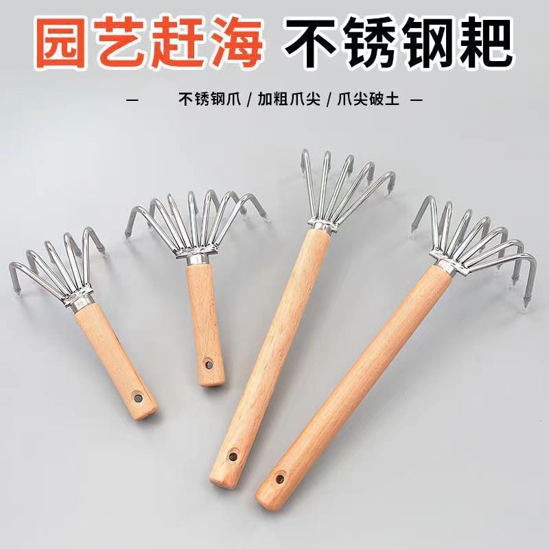 ステンレス鋼一体溶接柄園芸小熊手松土小熊手多歯熊手多爪海鮮熊手園林