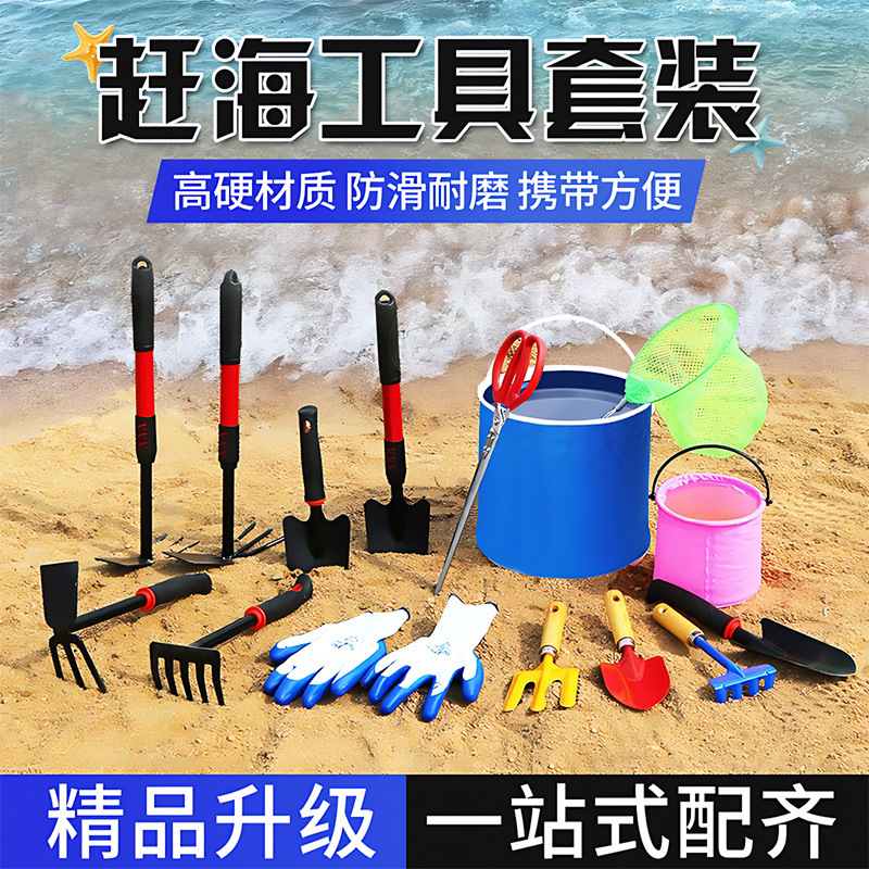 海釣り道具専門セット、両用鍬、かき、カニ捕り、貝掘り、砂浜用、新作ガーデニンググローブ